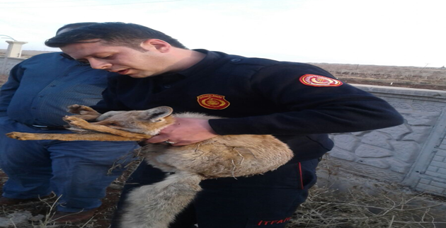 Şanlıurfa'nın Suruç ilçesinde, foseptik çukuruna düşen ve aç kaldığı için ölmek üzere olan tilkiyi, itfaiye ekipleri kurtardı.