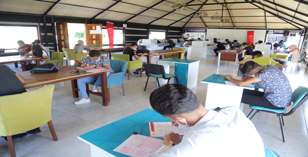 Eyyübiyeli gençler, Eyyübiye Belediyesi Kültür Müdürlüğüne bağlı Kitap Otağında, 27-28 Haziran tarihleri arasında yapılacak olan, YKS sınavı öncesi, deneme sınavlarına tabi tutuluyor.