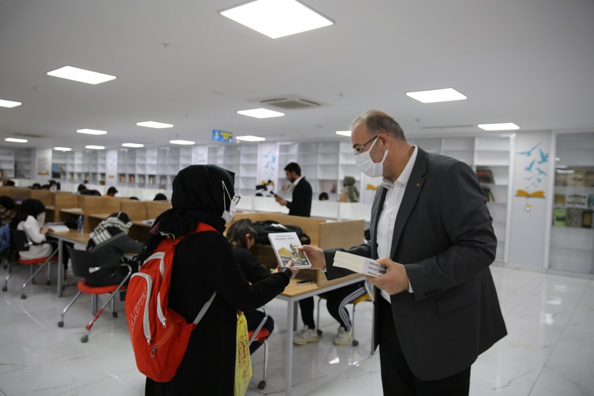 Kültür ve Sosyal İşler Müdürlüğü, İstiklal Marşının kabulünün yıl dönümü dolayısıyla Recep Tayyip Erdoğan Kültür Merkezindeki kütüphanede ders çalışan gençlere kitap dağıtımı gerçekleştirdi. Doç. Dr. Mahmut Öztürk’ün düzenlediği ‘Milletin Sesi Mehmed Âkif' kitabını teslim alan gençlere, müdürlük görevlileri kitaplarını teslim etti. Üniversite hazırlık kurslarından faydalanan gençlere de dağıtımı gerçekleştirilecek olan Milletin Sesi Mehmed Âkif' Kitabı, Milli Şairin eserleriyle ilgili bilgiler veriyor.