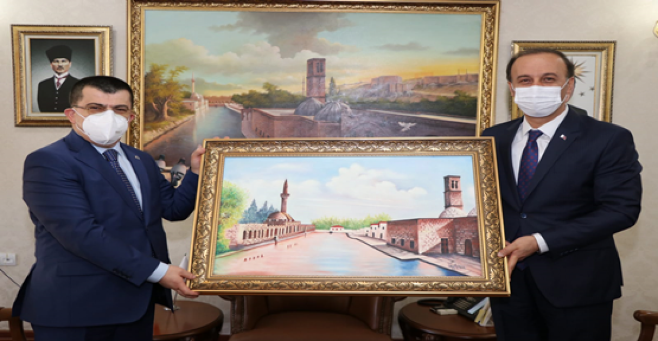 Vali Abdullah Erin tarafından karşılanan Göç İdaresi Genel Müdürü Dr. Savaş Ünlü, Vali Erin ile makamında bir süre görüştü. Şanlıurfa’da yaşayan göçmen nüfusa yönelik verilen hizmetler hakkında görüş alışverişinde bulunulan ziyaret sonrası, Vali Erin tarafından Genel Müdür Ünlü’ye yağlı boya Şanlıurfa tablosu hediye edildi.