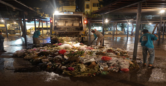 Haliliye Belediyesi Temizlik İşleri Müdürlüğü ekipleri ilçe genelinde hummalı bir temizlik çalışması yürütüyor. İlçe genelinde kurulan pazar yerlerinde tonlarca atık ivedi bir şekilde temizleniyor. Pazar yerlerinde gerçekleştirilen temizlik çalışmaları hem çürümelerin önüne geçiliyor hem de buradan ilçe geneline yayılacak olan mikroplarla mücadele ediliyor.