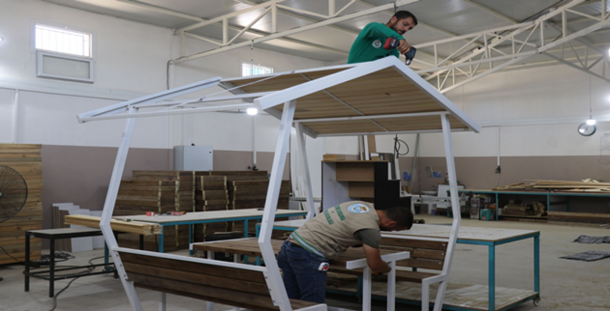 Belediye bünyesinde kurulan Araç Bakım ve Onarım Atölyesi ile önceki yıllarda şehir dışına gönderilen iş makinalarının bakım ve onarımı ustalar tarafından yapılırken, yıllık büyük tasarruf sağlanıyor. Haliliye’nin geleceği için parklarda yürütülen rutin çalışmaların yanı sıra ilçeye kazandırılan bank ve piknik masalarının onarımı da belediye bünyesinde yapılıyor. Çevre Koruma ve Kontrol Müdürlüğü Ahşap-İş Atölyesinde deforme olan bank ve piknik masaları, onarım sonrası ilk günkü görünümüyle yeniden hizmete sunuyor. Şanlıurfa’da bir ilk olan atölyeler ile hem hizmette hızlı işleyişi hem de tasarrufu sağlayan Haliliye Belediyesi, parklara kazandırdığı kamelyaları da artık kendi bünyesinde yapıyor. Yemyeşil bir Haliliye için atölyelerde ustalar tarafından hazırlanan kamelyalar, parklara monte edilerek vatandaşların hizmetine sunuluyor.