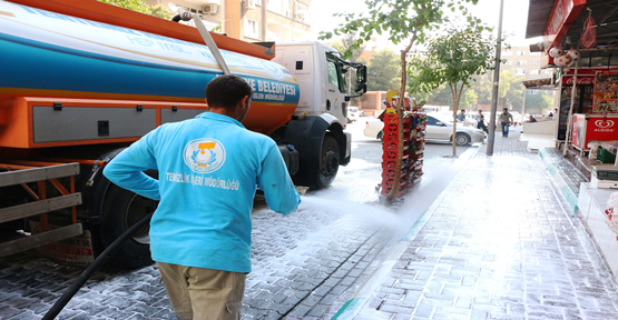 Haliliye Belediyesi, merkez sınırları içinde bulunan 32 mahallede köpükle kaldırım ve yol temizliğine başladı.