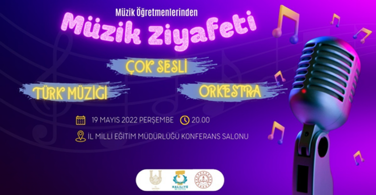 Haliliye Belediyesi, Şanlıurfa Valiliği ve İl Milli Eğitim Müdürlüğü ortaklığı ile düzenlenen etkinlik ile “Müzik Öğretmenlerinden Müzik Ziyafeti” konseri verilecek. Müzik öğretmenlerinin sahne alacağı konserde orkestra eşliğinde Türk Müziğinden parçalar seslendirilecek. Konser ‘Çok Sesli Koro, Türk Müziği Korosu ve Orkestra’ ile 3 bölümden oluşacak.