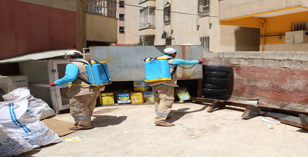 İlaçlama ekipleri, mist blower ve ulv araçlarıyla gece vardiyasında çalışmalarını sürdürürken, gündüz vardiyasında ise sırt pompasıyla ekipler apartman bahçeleri, çöp konteynerleri, rögar ve bodrumlarda ilaçlama yapıyor.