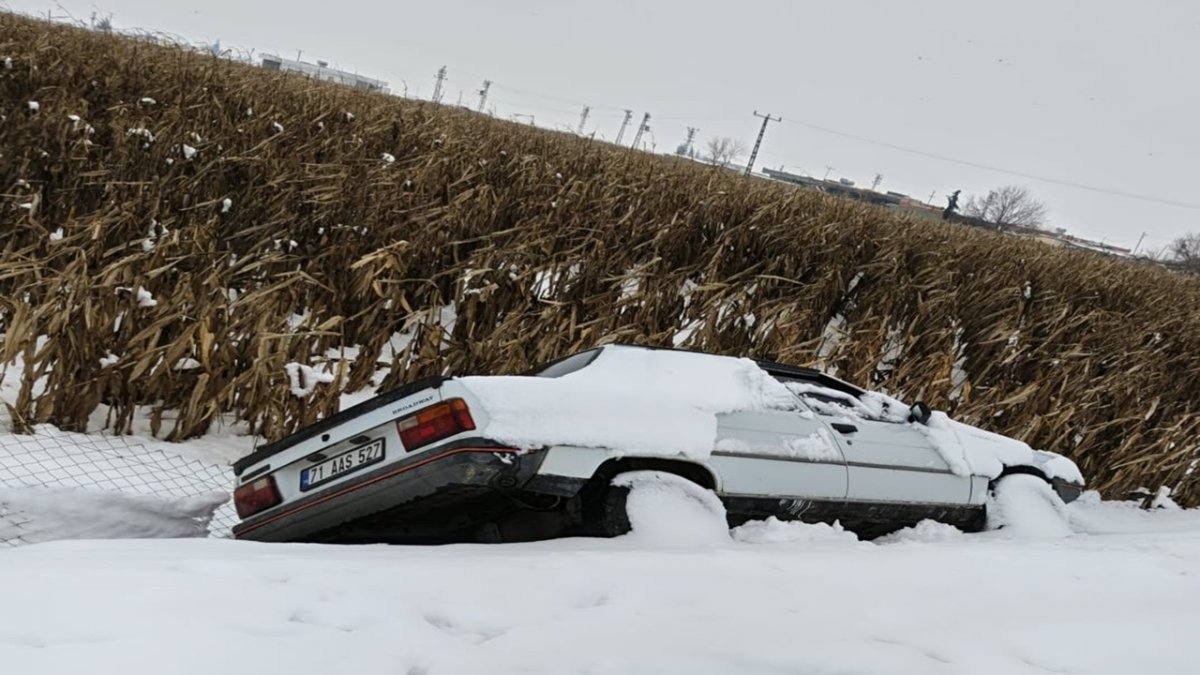 Alınan bilgilere göre, henüz sürücüsünün ismi öğrenilmeyen 71 ASS 527 plakalı otomobil karla kaplı yolda ilerlediği sırada sürücünün direksiyon hâkimiyetini kaybetmesi sonucu yoldan çıktı.