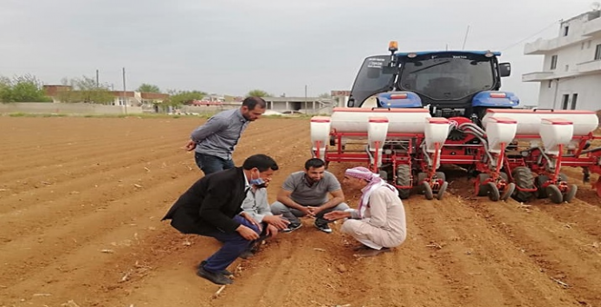 Eyyübiye ilçe Gıda Tarım ve Hayvancılık müdürü İsa İzgi, Çiftçilerin birlikte dekara atılacak pamuk tohum miktarı ile tohumun toprak düşme derinliğini ayarlı yarak çiftçileri bilgilendirdi.