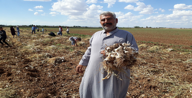Şanlıurfa’nın Eyyübiye ilçesine bağlı Horoz Mahallesinde yetişen ve Şubat ayı sonunda dikimi gerçekleşen sarımsağın hasadı başladı. Çiftçiler tarım giderlerin maliyetin yüksek olduğundan yakındı.