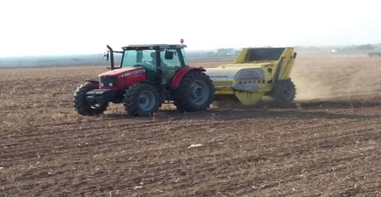 Harran ovasında çiftçiler daha iyi ürün elde edebilmesi ve arazinin iyi sulanabilmesi için hasad sonrası tarlalar tesviye ediliyor.