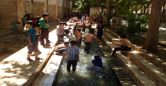 Hasan Paşa caminde çocuklar Namaz bitiminde ayaklarını serin suya sokarak serinliyor. Çocuklar Bir yandan serinliyor, bir yandan da okunan mukabeleleri dinliyor.