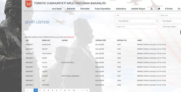 E-devletten aile büyüklerinin ismini öğrenenler, Milli Savunma Bakanlığı sitesinden isim aramaya başladı.