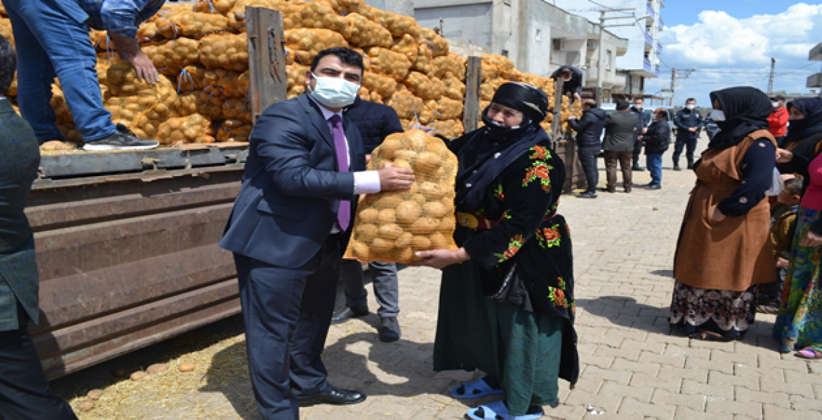 Şanlıurfa’nın Hilvan ilçesinde Cumhurbaşkanı Recep Tayyip Erdoğan’ın talimatıyla başlatılan uygulamada, üreticiden alınan patates ücretsiz olarak ihtiyaç sahiplerine dağıtılmaya başlandı.