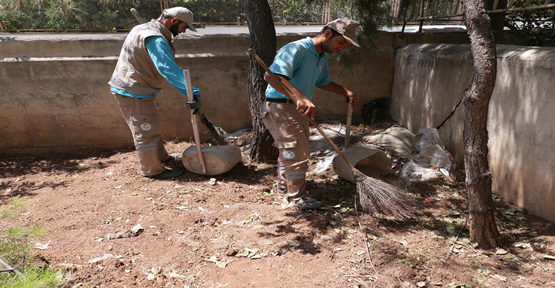 Haliliye Belediyesi, merkez mahallelerde bulunan apartmanların bahçelerine yönelik başlattığı temizlik çalışmalarını Ramazan Ayında da sürdürüyor.