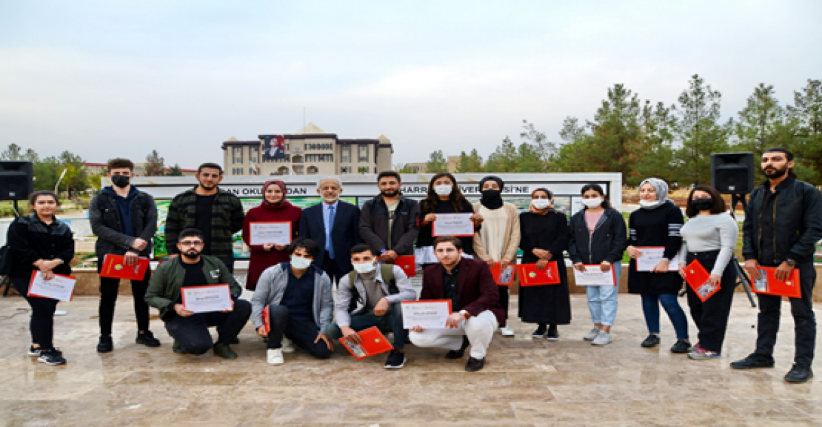 Yine bu kapsamda, Harran Üniversitesi’ni geçmişten günümüze simgeleyen ‘Aidiyet Anıtı’nın fotoğraflarla belgelenmesi ve Osmanbey Yerleşkesinde yer alan eserin yerel, ulusal ve uluslararası tanıtımına katkı sağlanması amacıyla düzenlenen fotoğraf yarışması sonuçlarına göre dereceye giren ve dijital sergilemeye hak kazanan öğrenciler ödüllerini, Rektör Prof. Dr. Mehmet Sabri Çelik’in elinden aldı.