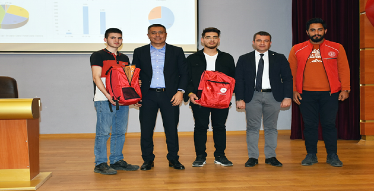Sunumunda, yıkıcı yenilikçi teknolojilerin hayatımızın her alanında olduğunu belirten Genel Müdür Dr. Cebrail Taşkın: “Mobil internet, sabit internetin yerini alıyor. WhatsApp, operatörlerin, sms servislerinin yerini aldı. Dvd’den film izleme bitti, şimdi Apple TV Netlix veya IPTVplatformlarından izleme dönemi başladı. Yapay zekâ ile donatılmış robotlar insan zekâsının yerini almaya başladı.Nesnelerin interneti, üç boyutlu yazıcılar, akıllı cihazlar, kendi kendini yöneten otonom sistemlerdeki teknolojik gelişmeler, mevcut iş modelleri yenileriyle değiştiriliyor. Bazışirketler yeni dijital iş modelleri oluşturarak mevcut sektörü tehdit ediyor. Dijital iş dönüşümü neredeyse tüm endüstrileri etkiliyor. Bu dijital hareketlenme sürecindesizin gibi genç arkadaşlarımızafaydalı olmasını hedeflediğimiz projeler yürütmeye başladık. Proje eğitimlerine dahil olarak kendinizi geliştirmenizi istiyoruz. Sizlerin ileride kendi işinizi kurabilecek seviyelere gelebilmeniz ve hedeflerinize ulaşabilmeniz için üzerimize düşen görevleri yapmaya çalışıyoruz” diye konuştu.
