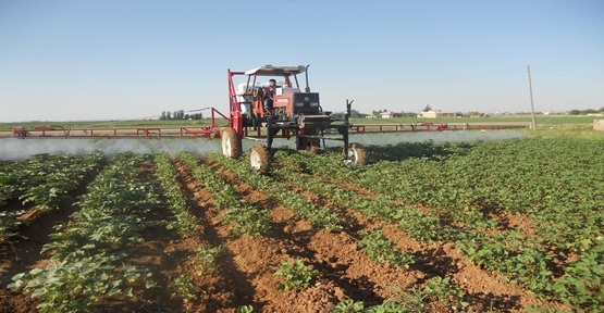 Şanlıurfa'nın Harran ilçesinde pamukta görülen kırmızı örümceğe karşı ilaçlama çalışmaları başladı.