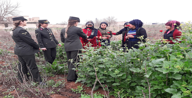 Kadın jandarmalar Lonteynır Kent İlkokulu-Ortaokulunda görevli kadınlar, Evinde çalışan kadınlar, Tarım alanlarında, bağ ve bahçede, gece gündüz demeden çalışan vefakâr kadınları ziyaret etti.