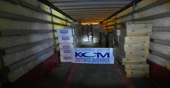 Şanlıurfa'nın Viranşehir ilçesinde Polis ekiplerin yaptıkları yol uygulamasında şüphe üzerine durdurulan çekiciye takılı dorsede yapılan armada 122 bin gümrük kaçağı sigara ele geçirildi