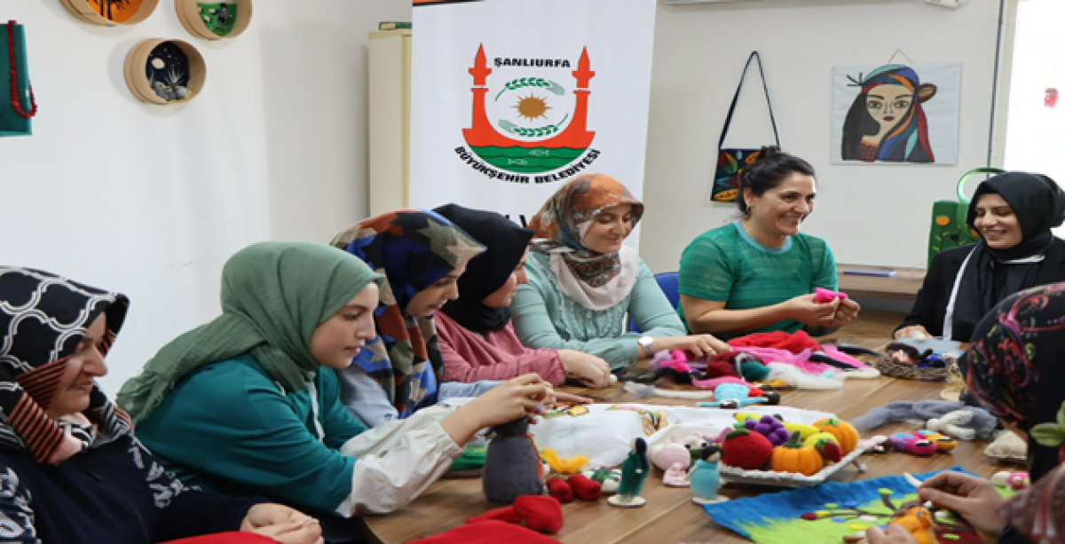 Şanlıurfa Büyükşehir Belediyesi Ahmet Yesevi Kadın Merkezinde açılan kurslara kadınlar yoğun ilgi gösteriyor. Günün büyük bir bölümünü kurs merkezinde geçiren kadınlara unutulmaya yüz tutmuş keçe atölyesinde eğitim veriliyor.