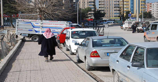 Şanlıurfa’da yaya kaldırımlarına park eden araçlar tarafında işgal edilmiş.