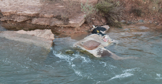 Tarımsal sulamanın fazla yapıldığı Şanlıurfa’da telef olan hayvanlar da sulama kanallarına atılıyor.