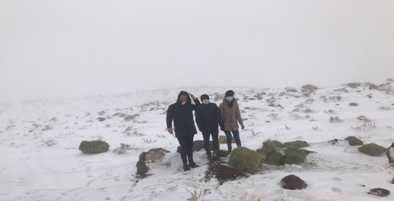 Kar yağışı nedeniyle aç kalan hayvanlara yem bırakıldı