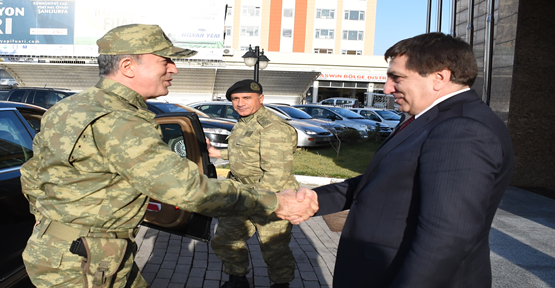 Valiliğe gelişinde şeref defterini imzalayan Orgeneral Akar, daha sonra beraberindeki heyetle birlikte Vali İzzettin Küçük’ün makamına geçti. Makamında misafirleriyle bir süre görüşen Vali İzzettin Küçük ziyaretten duyduğu memnuniyeti ifade ederek konuklarına teşekkür etti.