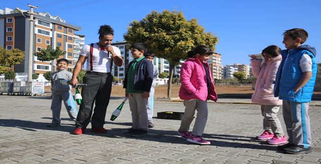 Karaköprü Belediyesi Kültür ve Sosyal İşler Müdürlüğü tarafından gerçekleştirilen jonglör gösterisinde minik çocuklar gönüllerince eğlendi.