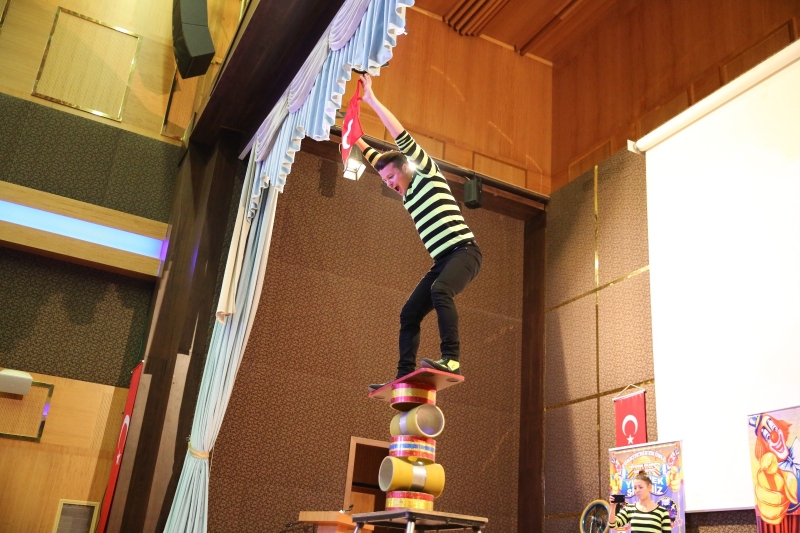 Karaköprü Belediyesi okulların yarıyıl tatiline girmesi nedeniyle çocuklara karne hediyesi olarak gerçekleştirdiği programda ‘Yetenek Sirkiniz’ cambaz ve sirk gösterisi ile çocuklar doyasıya eğlendi