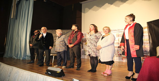 Oyun sonunda Belediye Başkan Yardımcısı Celal Şeker oyuncuları tebrik ederken, kadına şiddetin aile ve toplum yapısına açtığı yaraları anlatan güzel bir oyun sahnelendiğini dile getirdi.