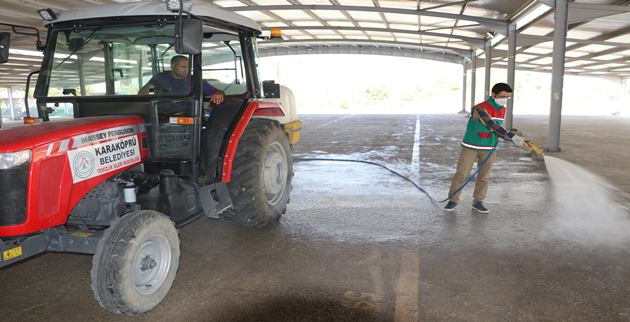 Karaköprü Belediyesi Temizlik İşleri Müdürlüğü ekipleri ilçe genelinde kurulan 11 kurban kesim yerinde kapsamlı bir temizlik ve dezenfekte çalışması yaptı. Ekipler tarafından ilaçlı su ile yıkanan kesim yerleri daha sonra dezenfekte edildi.