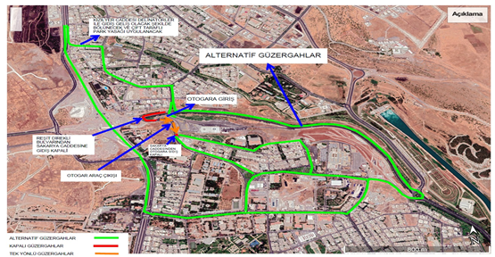 Kuzeydoğu çevre yoluna otogar kesişme kavşağında açık refüjün kapatılarak Reşit Direkli bulvar çıkışından yeni bir güzergâh açılacak ve araç geçişleri sağlanacaktır. Kamuoyunun bilgisine sunulur.