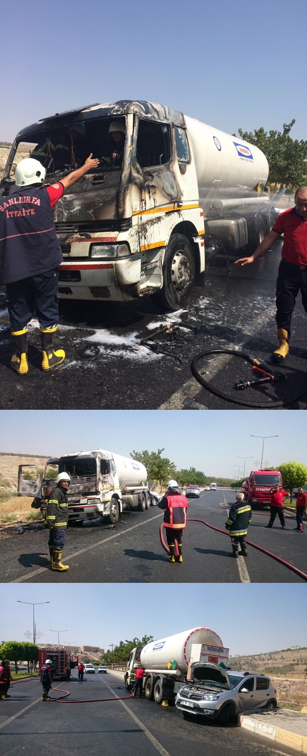 Olay, öğleden sonra Karaköprü-Mardin yolu üzerinde meydana geldi. 44 yaşındaki Mehmet Şelek'in park ettiği 41 F 3467 plakalı boş LPG tankerinde bilinmeyen nedenle yangın çıktı. Kısa sürede tankerin ön bölümünden yükselen alevleri fark eden sürücü Şelek, itfaiye ekiplerinden yardım istedi. Bu sırada aracın kupa kısmında yangının büyümesi üzerine freni boşalan tanker, geri hareket ederek arkasında park halinde bulunan 63 M 1873 plakalı otomobili sürüklemeye başladı. Yaklaşık 400 metre sürüklendikten sonra duran tankere itfaiye ekipleri müdahale etti. Yangında tanker sürücü Mehmet Şelek ile bir itfaiye eri yaralandı. Yarım saat süren çalışmanın ardından kontrol altına alınan yangın nedeniyle tanker ve otomobilde hasar oluştu. Yangınla ilgili soruşturma başlatıldı.