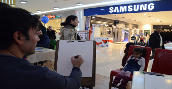 Mersinden Şanlıurfa'ya gelen Çağatay Sarıcan Bir alışveriş merkezinde alışverişe gelen vatandaşların karikatürünü çizdi. Daha önce Şanlıurfa'da yapılmayan bu etkinlik vatandaşların yoğun ilgisini çekti.