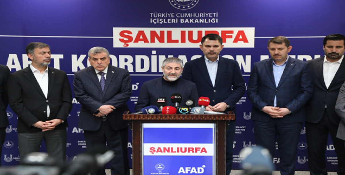 Hazine ve Maliye Bakanı Nureddin Nebati, Çevre, Şehircilik ve İklim Değişikliği Bakanı Murat Kurum ile Şanlıurfa AFAD Koordinasyon Merkezinde ortak basın toplantısı düzenledi.