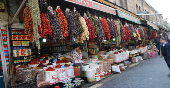 Şanlıurfa’da kış ayların lezzetleri arasında yer alan kurutmalık biber ve patlıcan, ve bamya tezgahlarda ki yerini aldı.
