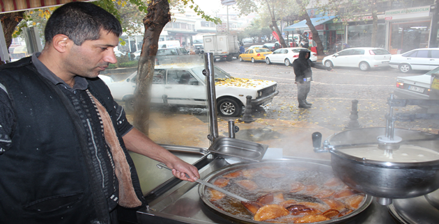 Şanlıurfa'da köşe başlarında görmeye alıştığımız tatlılar, havaların soğumasıyla birlikte daha fazla satılmaya başlandı. Özellikle yol üstünde bulunan dükkânlarda kurulan tatlı tezgâhlarından ayaküstü tatlı yiyen vatandaşların sayısı kış mevsiminin bastırmasıyla beraber daha da arttı.