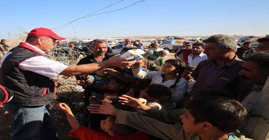 Suruç’un karşısında bulunan Suriye’nin Kobani kentinde 19 Eylül tarihinde PYD ile IŞİD güçleri arasında başlayan çatışmaların ardından Suriyelilere yönelik başlatılan yardım çalışmaları sürüyor. Şanlıurfa Valiliğinin koordinesinde AFAD ve Türk Kızılayı’nın sürdürdüğü yardım çalışmaları kapsamında Suriye sınır hattındaki Yumurtalık bölgesinde araç ve hayvanlarını bekleyen, Türkiye’ye henüz geçmeyen Suriyelilere (Kobanili) 1000 adet su, süt ve enerji verici bisküvi dağıtıldı.