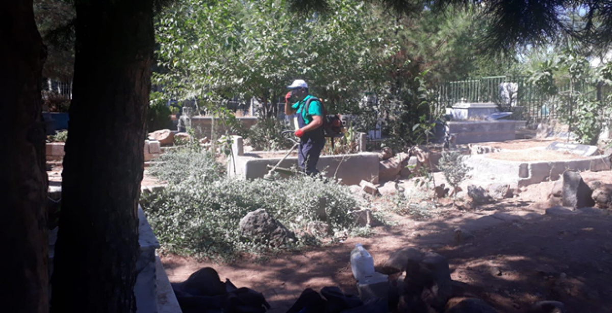 Vatandaşların bayram öncesi ve bayram süresince en yoğun olarak ziyaret ettiği mekânlar arasında gelen mezarlıklar, Viranşehir Belediyesi ekiplerince temizlenerek, daha güzel bir görünüme kavuşturuluyor. Mezarlıkları Kurban Bayramı’na hazırlayan belediye ekipleri, mezarlıklarda kuruyan otlar, dikenler, atılan çöp ve katı atıkları temizliyor.