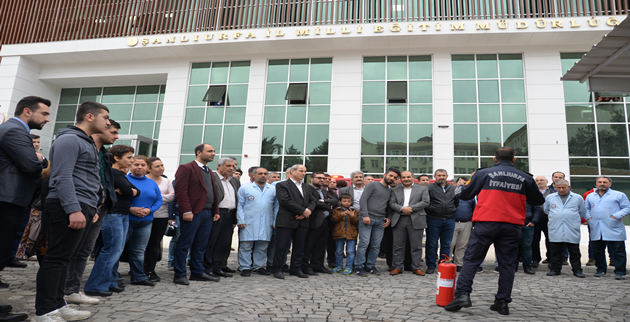 Şanlıurfa İl Milli Eğitim Müdürlüğü'nde deprem haftası nedeniyle deprem ve yangın tatbikatı yapıldı.