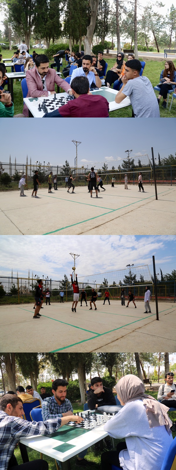 Harran Üniversitesi Eyyübiye kampusunda bulunan Sosyal Bilimler Meslek Yüksekokulu bahçesinde satranç ve voleybol turnuvaları gerçekleşti. Turnuvada finale kalan program öğrencileri , hoca karması ile karşılaşacak.