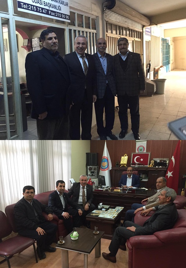 Serbest Muhasebeci ve Mali Müşavirler eski oda başkanı Ak parti Milletvekili Aday Adayı Nihat Taş seçim çalışmalarında Kasaplar dernek başkanı Abbas Tumbul, Terziler oda başkanı Numan Tuğbay ve Kuyumcular odası Başkanı İbrahim Halil Demirkol ziyaret etti.