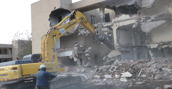 Şanlıurfa Büyükşehir Belediyesi Emlak ve İstimlak Daire Başkanlığı ekipleri tarafından çevre önemli alındıktan sonra iş makineleriyle boşaltılan konutlar güvenli bir şekilde yıkımı gerçekleştiriliyor.