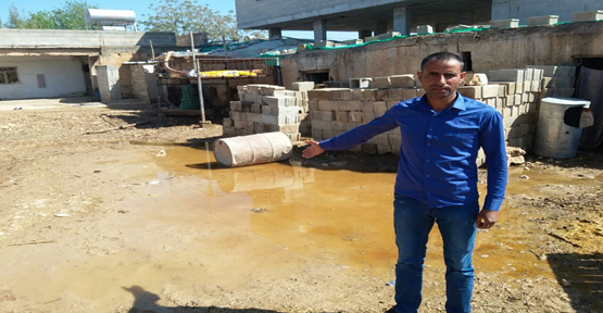 Şanlıurfa'nın Eyyübiye ilçesi Sağlık mahallesinde Abdullah İncediş adlı vatandaş, evinin önünde bulunan logarın taştığını belirterek yetkililerden yardım istedi.