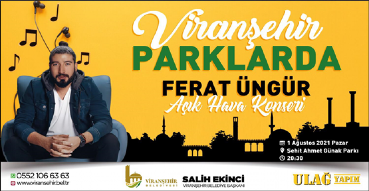 01.08.2021 Pazar günü Saat: 20.30’da Yenişehir Mahallesinde bulunan Şehit Ahmet Oktay Günak parkında düzenlenecek açık hava konserinde, O Ses Türkiye'nin 2019 şampiyonu Ferat Üngür, sahne alacak.