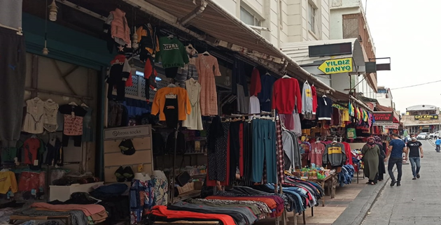 Şanlıurfa'nın Eyyübiye ilçesinde yer alan Yıldız meydanı Çarşı'da korona virüs nedeniyle en sakin okul alışverişi yaşanıyor.