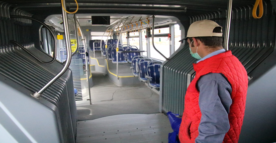 Toplu taşıma araçlarının tüm iç yüzeylerinin, tavanın, koltukların, cam, reklam panoları, yolcu tutamak ve araçtaki tüm metal yüzeyler özel hazırlanmış ilaçlarla temizlenirken, rutin olarak gerçekleştirilen dış yıkamaları ve araç kontrolleri de yapıldı.