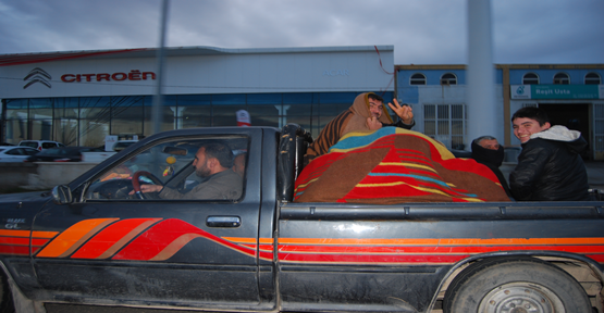Suriye'de çıkan olaylar yüzünden her gün onlarca insan Türkiye'ye sığınıyor. Araçlarla kaçan mülteciler kamyonet kasasında battaniye ile ısınmaya çalışıyor.