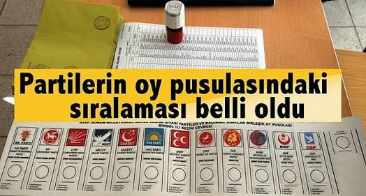 Oy pusulasında soldan sağa doğru yer alacak partilerin sıralaması şöyle;