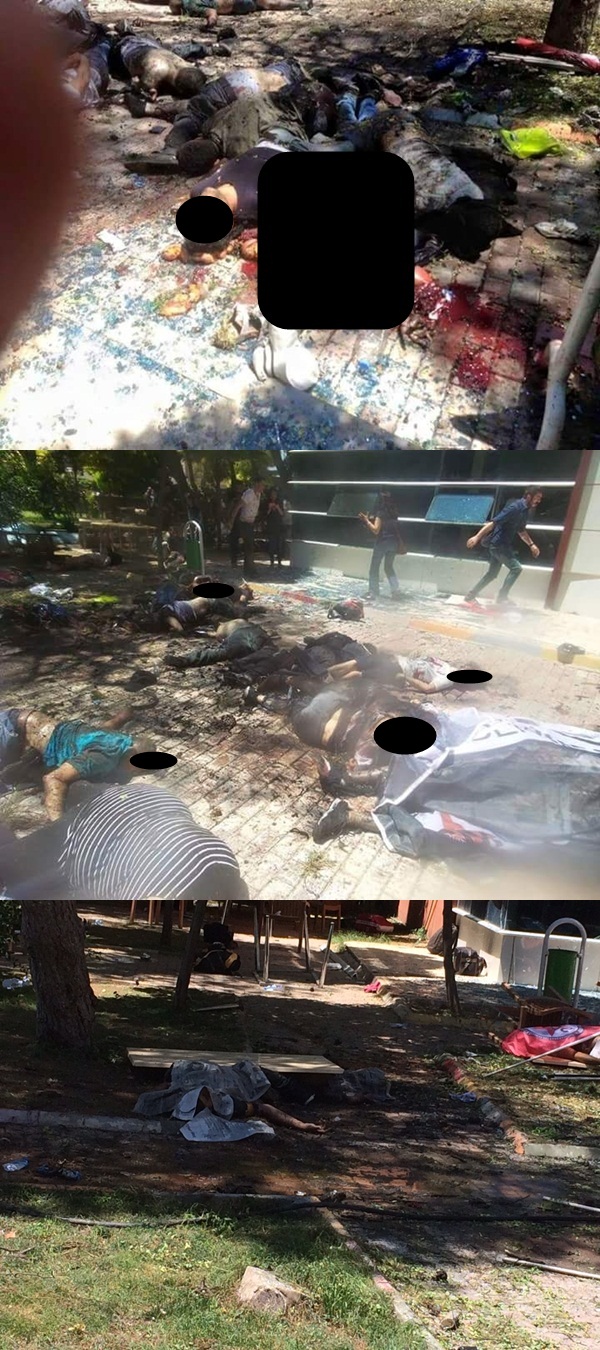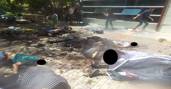 Şanlıurfa'nın Suruç İlçesi'ndeki Amara Kültür Merkezi'ndeki meydana gelen patlama sonrası savrulan insanların görüntüleri içler acısı